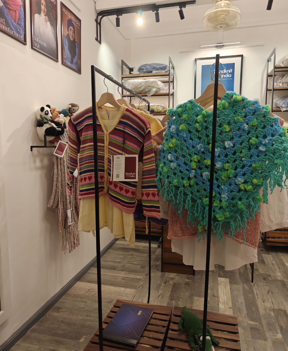 Stay warm and stylish with this beautifully handcrafted knitwear set. This premium handmade cardigan features vibrant multicolor stripes with soft wool fabric, paired with a textured crochet wool shawl. Designed for comfort and elegance, it is perfect for winter outings, casual wear, and boutique fashion collections.